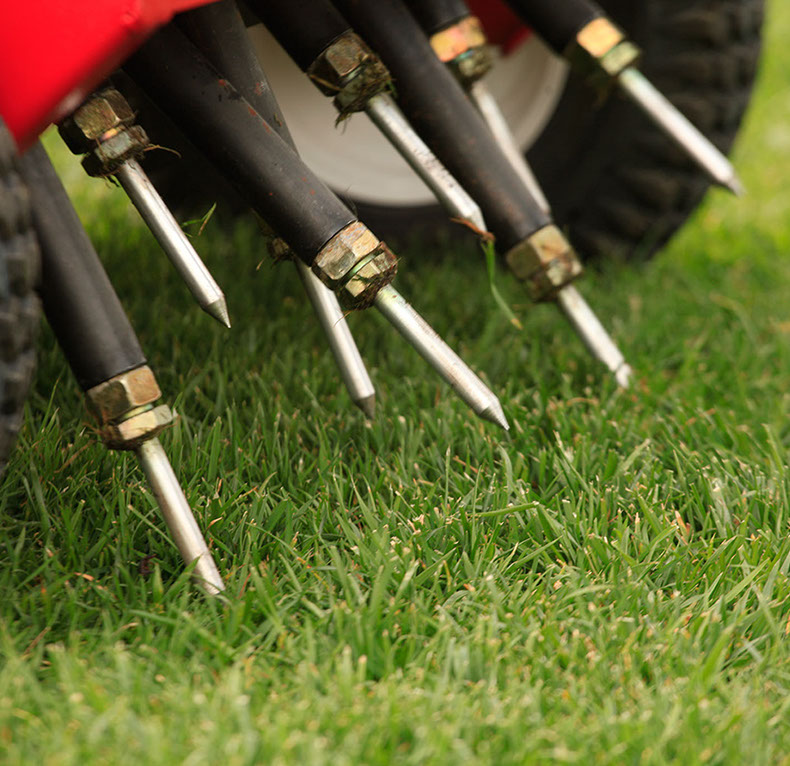 Passage d’un aérateur à pointes professionnel adapté à la taille du jardin. Le service de sablage par votre Guard est optionnelle et facturé en sus 1,49 € TTC / m2