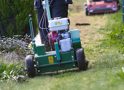 Passage d’un scarificateur professionnel à fléau adapté à la surface de la pelouse. Cette opération engendre un volume de déchets plus ou moins important. L’évacuation des déchets par votre Guard est optionnelle ( Facturation en sus / 0,40 € TTC / m2)
