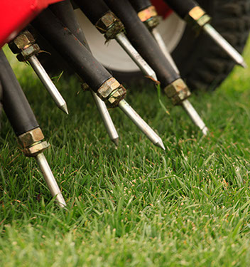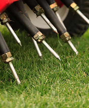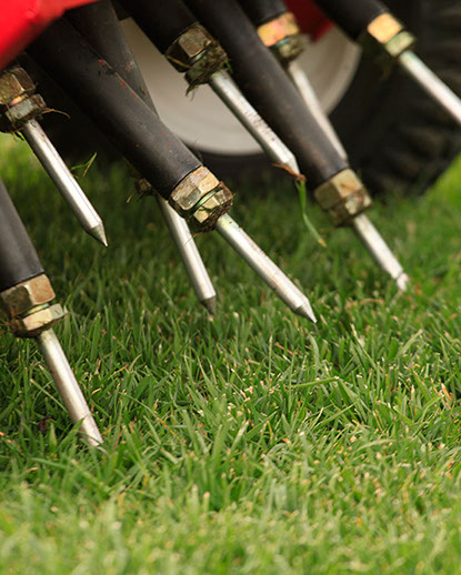 Passage d’un aérateur à pointes professionnel adapté à la taille du jardin. Le service de sablage par votre Guard est optionnelle et facturé en sus 1,49 € TTC / m2