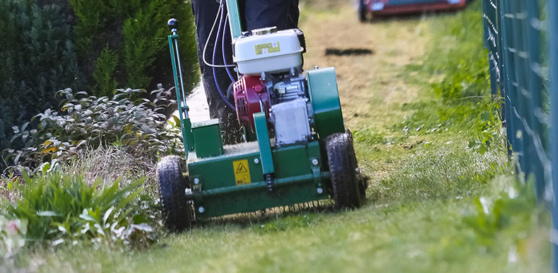 Passage d’un scarificateur professionnel à fléau adapté à la surface de la pelouse. Cette opération engendre un volume de déchets plus ou moins important. L’évacuation des déchets par votre Guard est optionnelle ( Facturation en sus / 0,40 € TTC / m2)